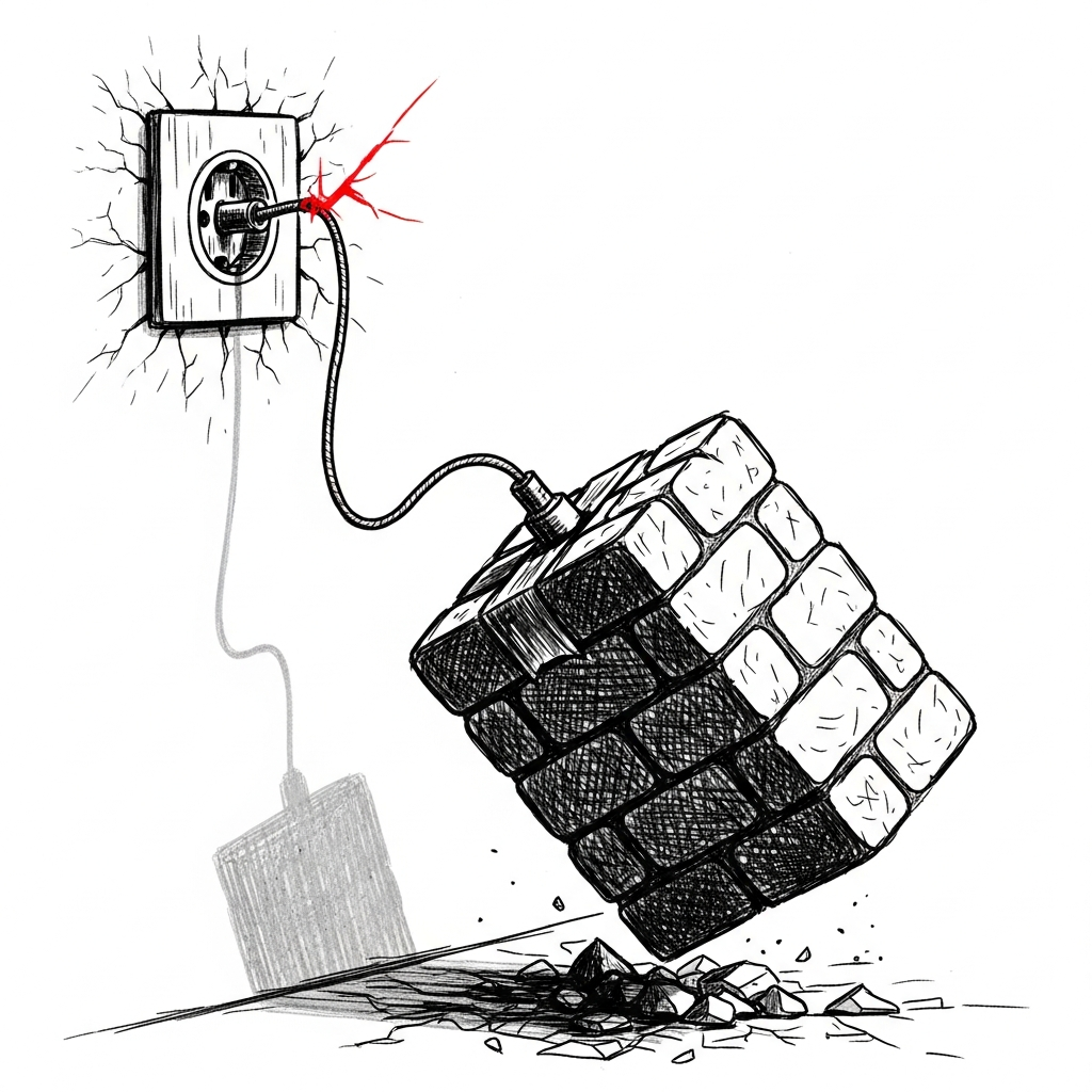 自らの重みに耐えきれず、うつむき加減でコンセントから抜け落ちる。その哀愁漂う姿には同情を禁じ得ませんが、朝起きてスマートフォンが息絶えている状況は、私の美学には反します。完全なる構造の敗北ですね。